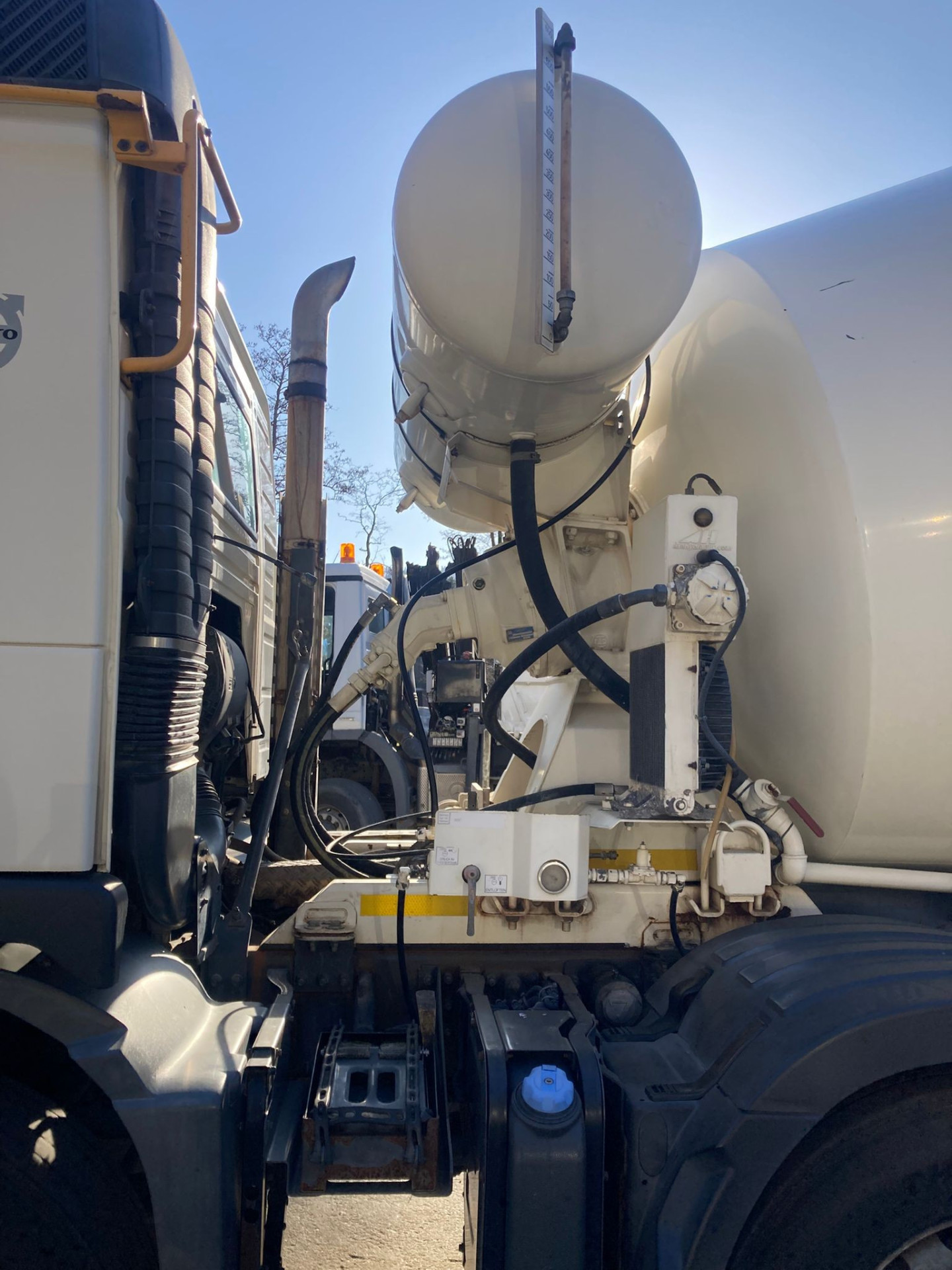 Antrieb: Die Trommel wird entweder über den Nebenantrieb (PTO) des Volvo-Motors oder ein separates Hydrauliksystem angetrieben.
