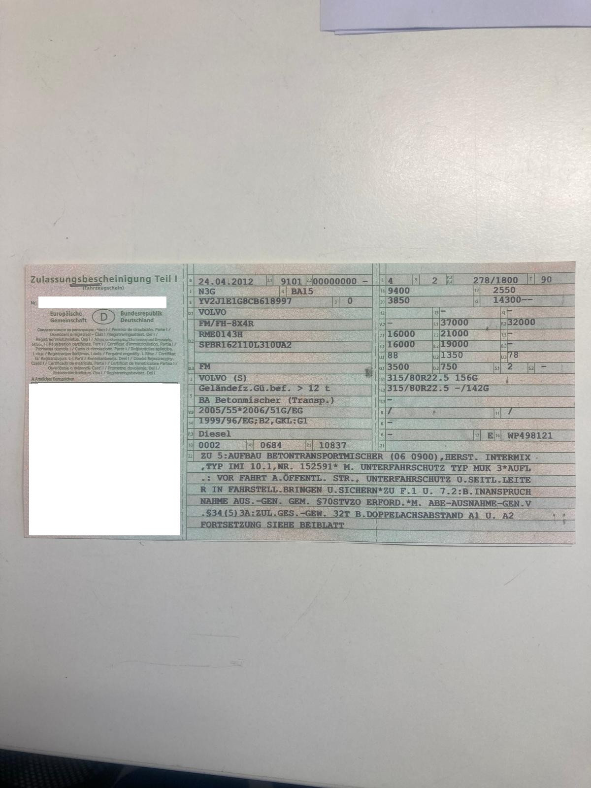 Pos. 001 | 4-Achser Betonmischer | Volvo FM/FH 8x4R | Intermix 10.000 Liter (10 m³) Behälter